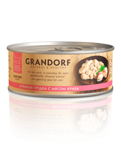 - 75% мяса в составе (50% куриная грудка, 25% мясо краба)