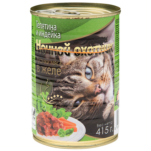 Ночной охотник для кошек Телятина Индейка в ЖЕЛЕ 415гр