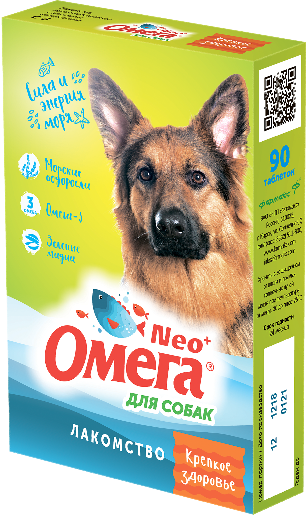 Омега Neo+ — вкусное и полезное лакомство для поощрения, баловства, дрессировки и укрепления организма собак.