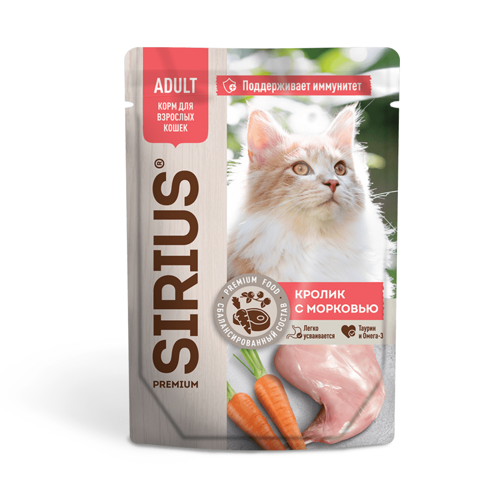 SIRIUS – влажный корм премиум-класса для полноценного ежедневного рациона взрослых кошек.
